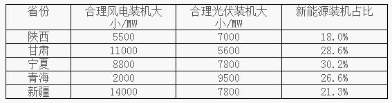 表2  2020年西北區域保證新能源正常消納合理裝機表