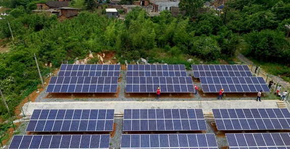 5月29日,電力部門工作人員在桂陽縣歐陽海鎮(zhèn)增家源村光伏發(fā)電站察看發(fā)電情況。該發(fā)電站裝機(jī)容量為63.6千瓦,可實(shí)現(xiàn)日均發(fā)電180度,每年可為村里創(chuàng)造6萬元的經(jīng)濟(jì)效益,幫助村民實(shí)現(xiàn)脫貧致富。去年,該縣通過政府擔(dān)保貸款方式,在36個貧困村建了39個光伏發(fā)電站,目前所有發(fā)電站正陸續(xù)投入使用。(歐陽常海 張躍平 攝