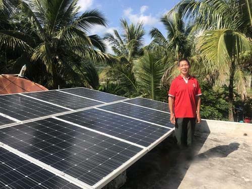 “好家伙,今天收獲了12度電,又賺了差不多15塊咯。”64歲的容林全做完農活回到家,看著家門口的光伏并網逆變器上顯示的發電量,他心滿意足地準備晚飯。容林全是三亞育才生態區雅林村委會上游村的貧困戶,自從家里裝上了光伏扶貧的太陽能光伏發電板后,每天看著電表里的數字一點點往上漲,就成了他每天最開心的事情。“數字越多,我口袋里的錢就越多,當然開心了。”容林全喜滋滋地說。