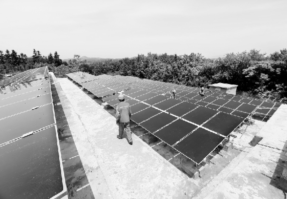 6月8日,黃陂區伏東村土主庵約2000平方米的光伏電站在陽光下顯得生機勃勃,國網武漢黃陂區供電公司研子服務部的工作人員在光伏板間走動,檢查設備運行情況。
